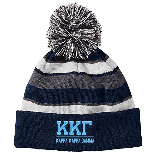 Product DescriptionKappa Kappa Gamma Greek Comeback Beanie Warm and soft 100% acrylic rib knit Tri-color pom-pom detail on top Folded hem Fit type: One size0