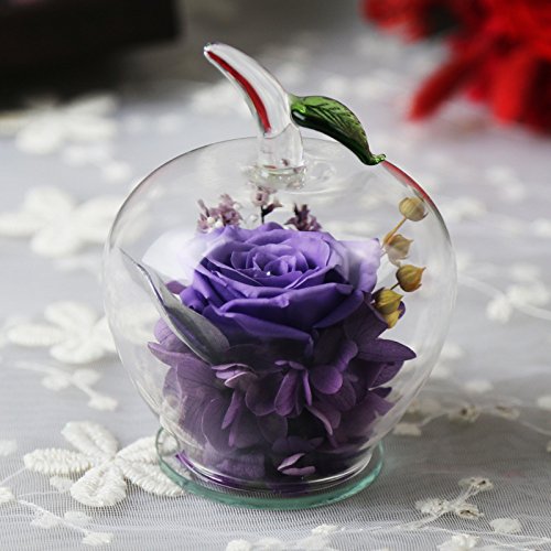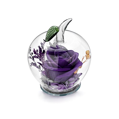 DeFancy Handmade Preserved Flowers Rose Decor with Apple-shaped Glass-Best Gift for Valentine's Day,Mother's Day,Birthday (Purple)
