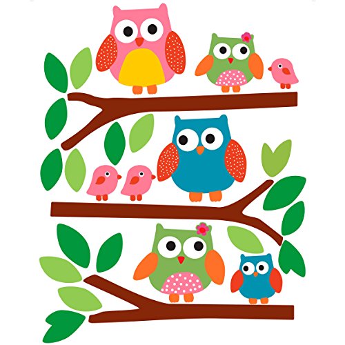 - Includes 5 peel and stick Owls wall decals and assorted branches and leaves stickers.