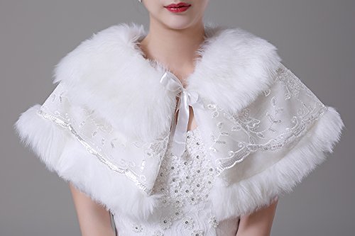 (Vweil)/Accessories/Scarves/DIRECT FROM USA/Vweil Winter Shrug Wraps Faux Fur Lace Shoulder Covers For Bride White PJ77471