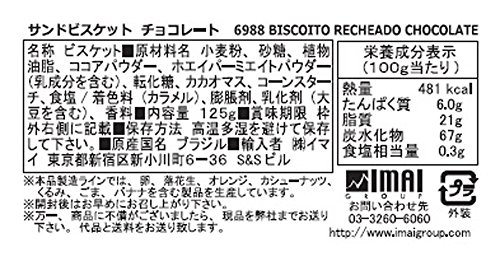 原材料:小麦粉、砂糖、植物油脂、ココアパウダー、ホエイパーミエイトパウダー(乳成分を含む)、転化糖、カカオマス、コーンスターチ、食塩/着色料(カラメル)、膨張剤、乳化剤(大豆を含む)、香料
