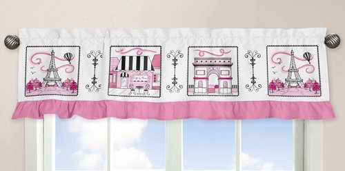 Sweet Jojo Designs Pink, Black and White Paris Collection French Eiffel Tower Window Valance