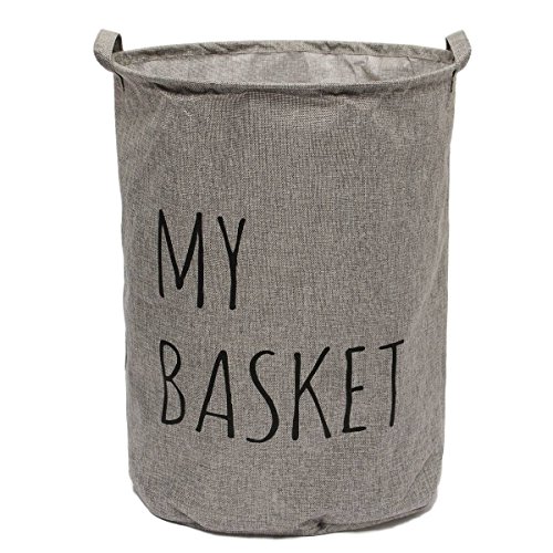 VIVIMONKEY Laundry Basket Linen Cotton Foldable Round Waterproof Coating Hamper Storage Bag Toy Storage Basket Box 15.7" x 18.9" (Grey)