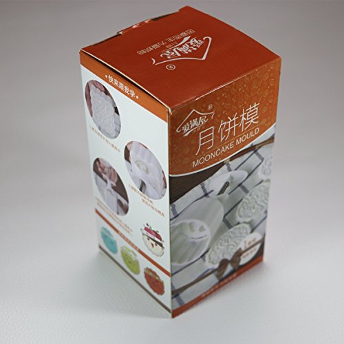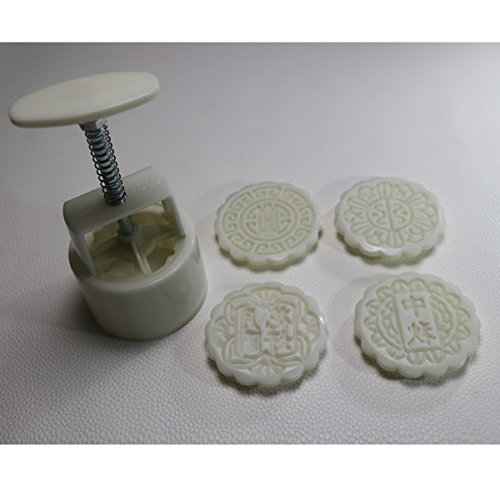 Mooncake Mold With 4 Stamps - Mid Autumn Festival Moon Cake Mold DIY Decoration Cookie Press 100g White (1 Mold 4 Stamps)