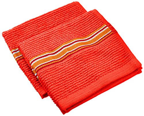 IMUSA Yarn Dye Stripe Dish Cloths, 100% Absorbent Thick Cotton, 2-Pack, Red