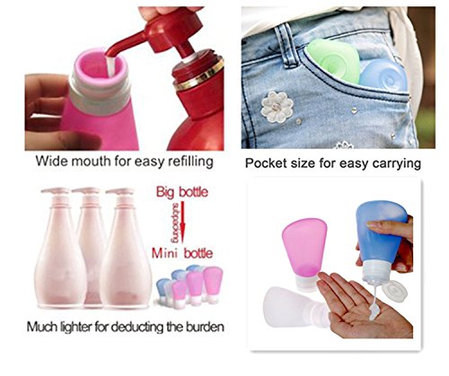 Features ☆ TSA Carry-on Airline Aprroved ☆ with whole liquid injection processing, zero pollution ☆ Soft and feel good to touch with perfect joint line ☆ Easy to refill and wash again ☆ 3-pcs pack is a perfect combination for travelling ☆ Separable for the cap and tube body ☆ Duration, Squeezable, Portable, Carry-on Airline Aprroved ☆ No-drip Value and Leak-proof design