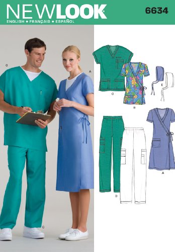 -. Feature : Miss/Men Scrubs in size A (All Sizes), New Look Pattern #6634 / Number of looks included: 5 / Designed in UK, Manufactured in USA / Instructions are written in English, Spanish, and French / Sested fabrics: Cotton and Cotton Blends, Laundered Cottons, Broadcloth, Chambray, Poplin; allow extra fabric for matching plaids or stripes