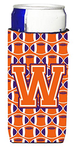 Letter W Football Orange, White and Regalia Ultra Beverage Insulators for slim cans CJ1072-WMUK