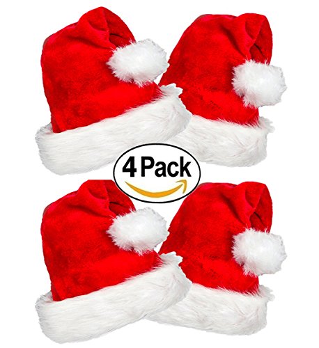 4 Pack Plush Santa Hat, Traditional Red and White Plush Christmas Santa Hat for Chirstmas Party, Adult size