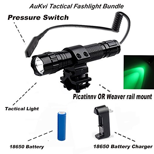 AuKvi 500LM Tactical Flashlight Light+Pressure Switch For Picatinny Quad Rail Rifle With Barrel Mount (Green Light)