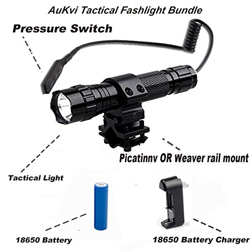 AuKvi 500LM Tactical Flashlight Light+Pressure Switch For Picatinny Quad Rail Rifle With Barrel Mount (White Light)