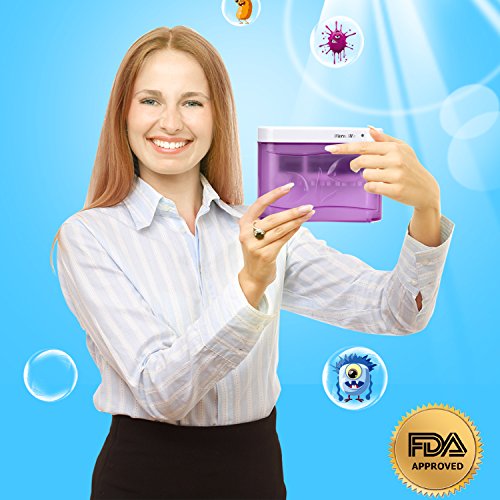 - SAFETY AND ANTI-UV - push botton switch, It will work automatically after closed the lid cover, auto off after finish sanitising 6-8 minutes. Dark blue matte cover, Strengthen bactericidal effect, 100% prevent ultraviolet radiation to the human eyes. Quality ABS material, high temperature resistance, non-toxic and environmental protection.