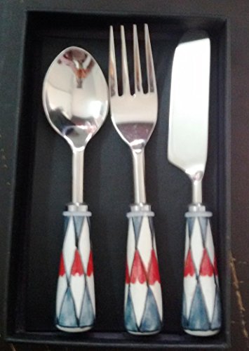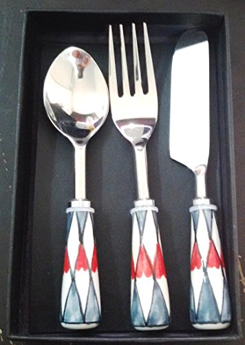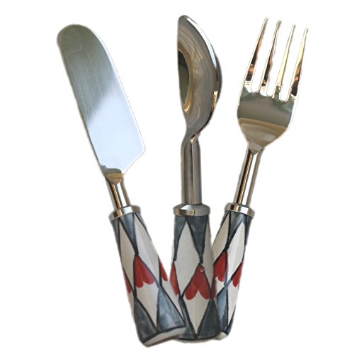 STREET CRAFT Set of 3 Flatware Cutlery Set with Hand Painted Ceramic Handle Stainless Steel Flatware 1 KNIFE 1 SPOON AND 1 FORK