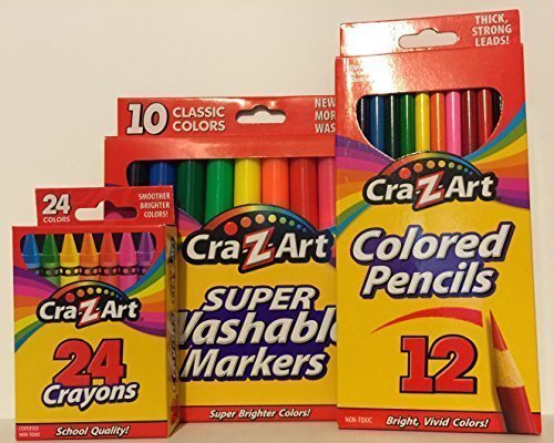 -. Title : Color Washable Markers Set, 24 Ct Crayons, 12 Coloring Pencils Pack Kids Art Supplies School Bundle