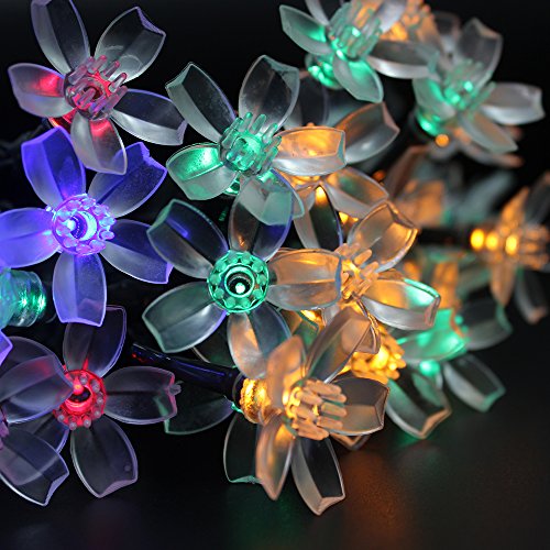 HueLiv Outdoor Solar LED String Lights, 21ft 50LEDs Blossom Flower Fairy Lights (Colorful)