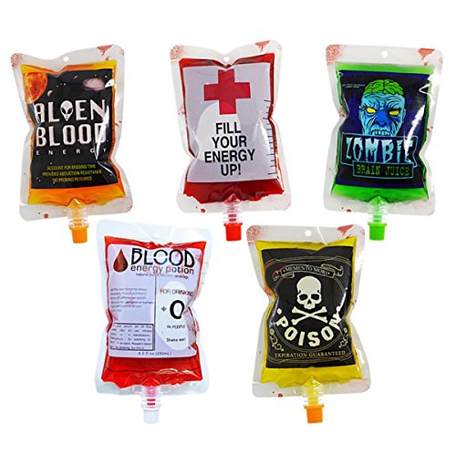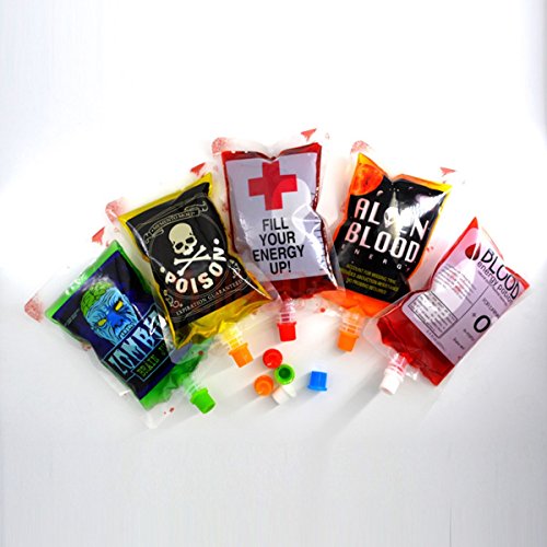 Katoot@ 5 Styles Clear Blood Energy Drink Beverage Bag Halloween Pouch Props Vampires Aliens Blood Bag Cosplay Party Events Decoration (Zombie)