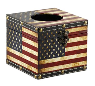 Distressed Retro Patriotic American Flag Toilet Tissue/ Facial Tissue Box Cover Holder with Lockable Hinge