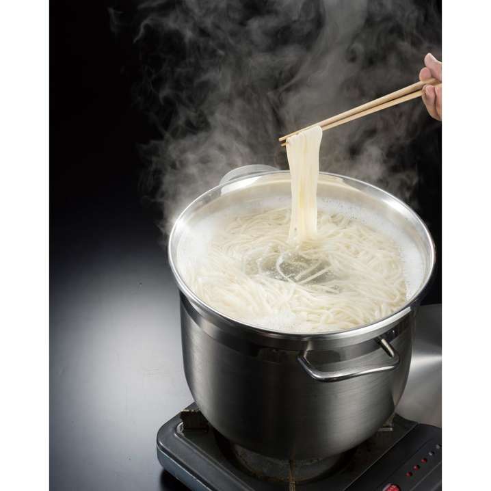 ●麺は、製粉会社と提携の特挽き小麦粉「讃州麦山」を使用。多加水で練り上げた生地を熟成し小麦の風味と旨みを引き出しました。特製つゆはいりこと鰹のだしを効かせ、釜上げうどんやざるうどん、ぶっかけうどん等にも美味しく頂ける万能つゆでうどん本来の味をお試しください。うどん県専用手提げ袋付