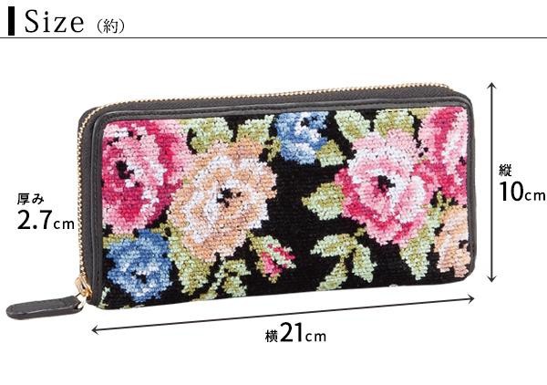 上品なシェニール織を両面に施した、華やかな長財布です。 製造国:中国 素材・材質:柄部分:綿100%(ドイツ製シェニール織)付属部分:本革 商品サイズ:(約)縦10×横21×厚み2.7cm 重量:約165g 仕様:ポケット数:カードポケット×12、仕切りポケット×4、ファスナー付き小銭入れ(内側仕切り付き)×1  ※サプライヤー直送品【商品名】LAKE ALSTER レイクアルスター サリーレ 長財布 ローズ 21532834 ブラック02