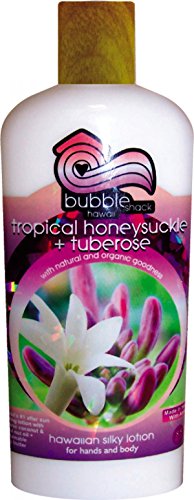 Our Tropical Honeysuckle + Tuberose Kukui and Shea Hawaiian Silky Lotion is like surfing through a barrel of dreamy, Hawaiian lei flowers. This tuberose lotion is an organic shea lotion that will give your skin a radiant glow with a scent that will sweep you away to the islands.