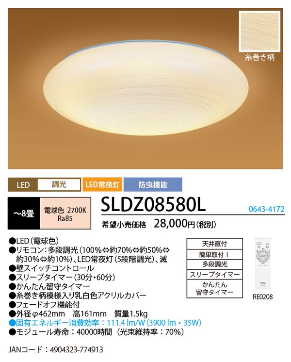 ●リモコン:多段調光(100%⇔約70%⇔約50%⇔約30%⇔約10%)、LED常夜灯(5段階調光)、減