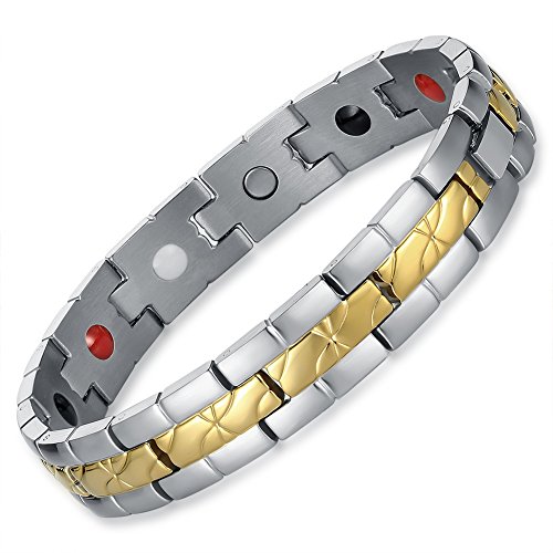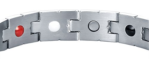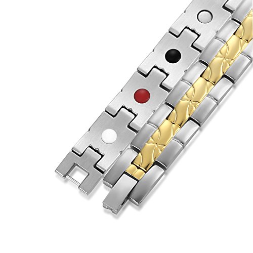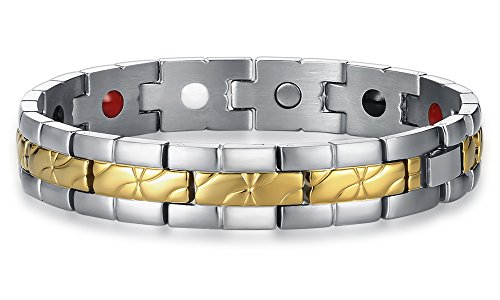 -. Feature : FUNCTION--Effectively alleviate pain,reduce inflammation and improve blood circulation,it is also used to reduce stress and anxiety, improve sleep and fitness,enhance overall balance / HIGH QUALITY MATERIAL--Magnetic stainless steel bracelet with high powered magnets for arthritis, top polishing process, scratches resistant and long colorfast,lead and nickel free ,benefit to your body health. / FASHION DESIGN--Elegant Titanium Stainless Steel,Look great on both men and women. Different colors to any occasion, style & mood,Length: 22.5cm(8.9 inches),Width:1.2cm(0.5 inches), 0.05kg/pcs / HEALTH CARE ELEMENTS--Come with 3500 gauss high powered earth magnets and other energy stones,effect best on physical and mental well-being,suitable for all ages and genders to wear / GREAT GIFT OPTION--Free elegant gift packaging suit make a great bracelet gift for any occasion,FREE LINK REMOVAL TOOL with instructions in details allows you to adjust the size in the comfort of your home(instruction include),(please feel free to contact us if any problem during use.)