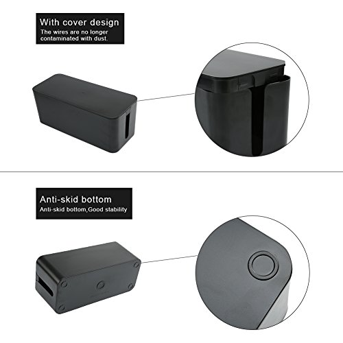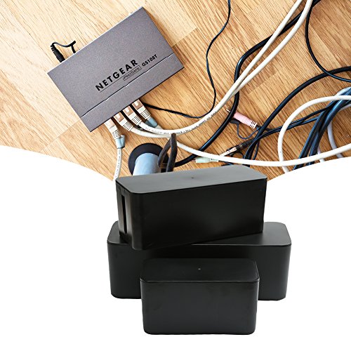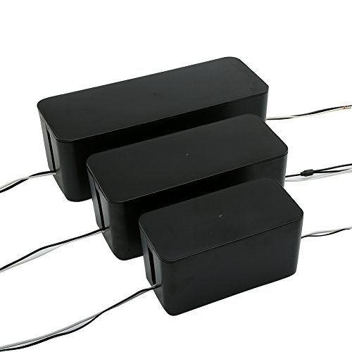 [Set of Three]Cable Management Boxes Organizer ,Large Storage Holder for Desk, TV, Computer, USB Hub, System to Cover and Hide & Power Strips & Cords(Black)