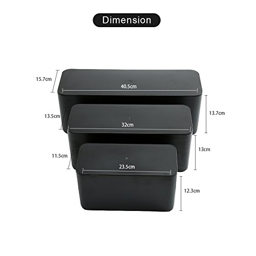- ★SET OF 3 DIFFERENT SIZE★ LARGE(16" x 6.2" x 5.4") ,MEDIUM(13" x 5.3" x 5") and SMALL(9.3" x 4.5" x 4.8") .Storing all of your outlet apparatuses including multiple power strips, cords, adapters, splitters, etc in one convenient place.
