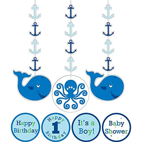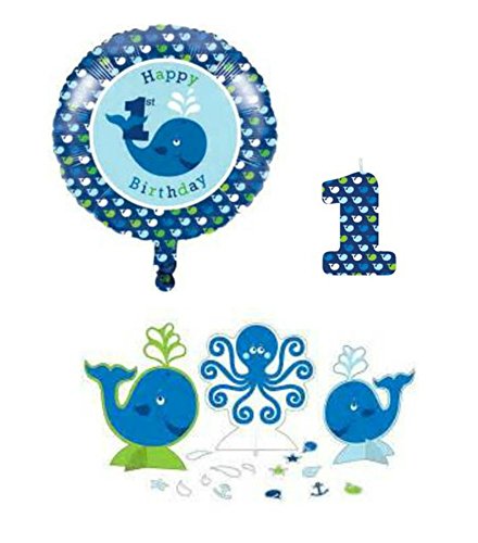 Kids 1st Birthday Ocean Preppy Nautical Themed Dinnerware/Decorations Combo Pack 12-Piece Bundle, Serves 8 (Plates/Napkins/Cups/Tablecloth/Decorations)