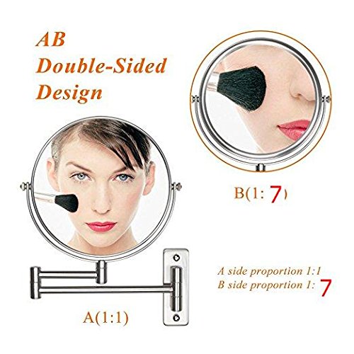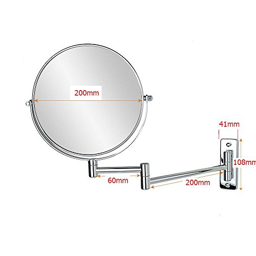 Large 8-Inch Mirror Face, Made of metal with chrome finished for shinning sliver color.360° Swivel Design:180 degrees on two arms and swivel a whole 360 degrees inside a frame. Could folding back against the wall when not in use.2 inch to get true image.