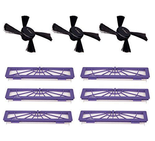 I-clean 6pcs Filters+3pcs Side Brush for All Neato Botvac Series Models and D Series, Replacement Neato Botvac D80 D85 D3 D5 Robot Vacuums for Pets and Allergies
