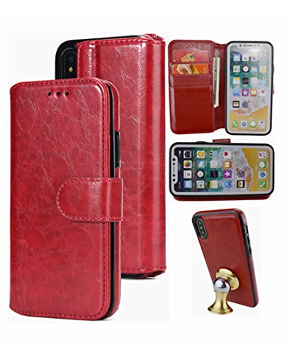 -. Feature : 〖2 IN 1 DETACHABLE DESIGN〗:Inner slim cover can removed from the wallet case, as a single case when you need to take pictures or slip it into pockkets. / 〖MATCH WITH MAGNETIC CAR MOUNT〗:With the invisible metal plate inside removed back cover ,So the slim case works great with all magnetic (car) mount. / 〖WALLET CASE〗:With 3 card slots and 1 money pocket,Carry around your ID, credit and debit cards, and cash without having to take your wallet with you. / 〖KICKSTAND FUNCTION〗: Can be converted easily into a stand case for video watching & messaging. / Flip PU leather wallet case, for Apple iPhone X .