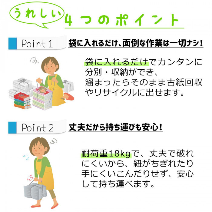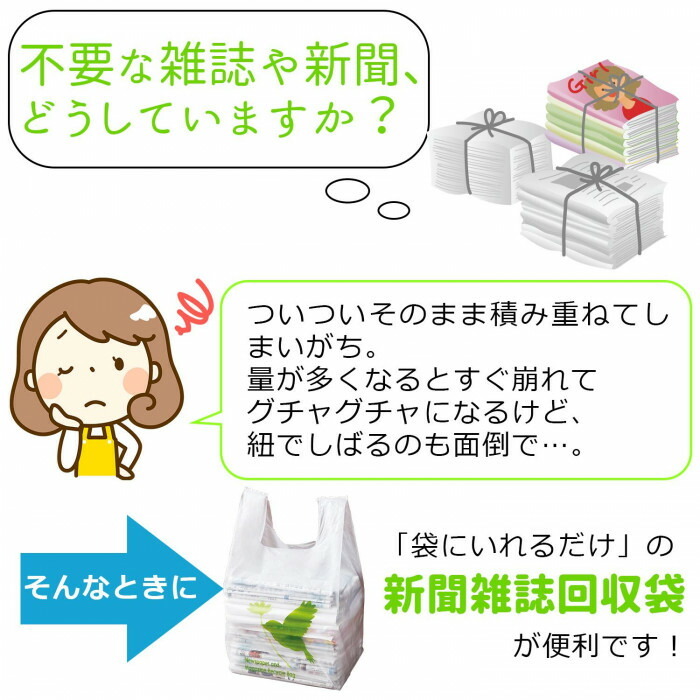 | <h1>強くて破れにくく、新聞や雑誌を収納・分別するのに最適です。かわいい小鳥をイメージしたデザインでリビングなどのお部屋の隅っこに置いても違和感なく見た目スッキリ!新聞/雑誌/廃品回収/分別/リサイクル/回収袋/丈夫/破れにくい</h1> |
