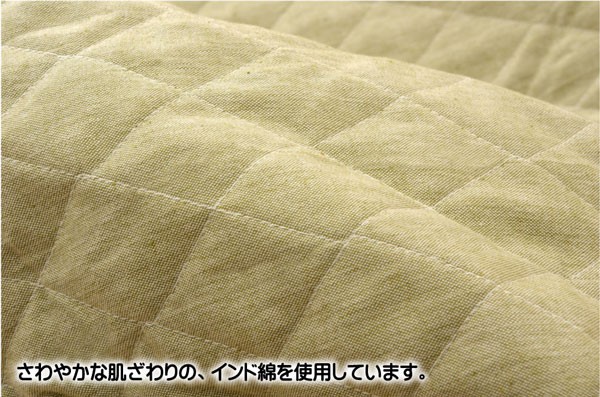 厚み20~40mmのボリュームタイプのカーペットに対応したカバーです。ボックスタイプなので脱着も簡単です。洗濯機丸洗い可能なので清潔にご使用頂けます。イン綿の生地を使用しています。インド産の綿は繊維が太く、引っ掛かりや摩擦に強く、耐久性に優れています。ざっくりとした生地で通気性がよく、気持のよい質感が特徴です。
