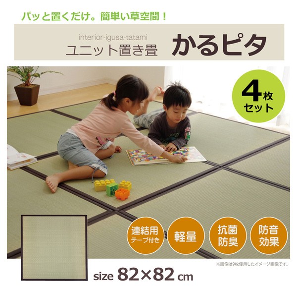【商品名】置き畳 半畳 い草ラグ 『かるピタ』 82×82cm 4枚組