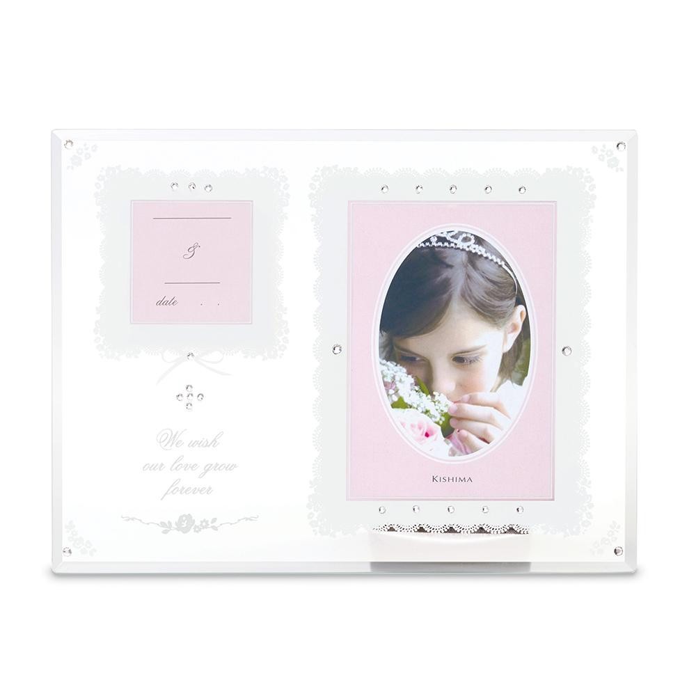 | 「私たちの愛が永遠に続きます様に…」というメッセージが、特別な日の写真をより一層引き立てます。また、名入れシートにはお二人のお名前と、日付を書き込むことができます。 |