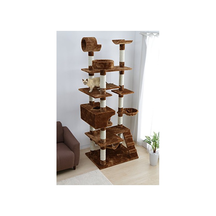 원본상품명:アイリスプラザ キャットタワ? ブラウン 73×116×210cm (滑り台ハンモック付置き型タイプ) QQ80100