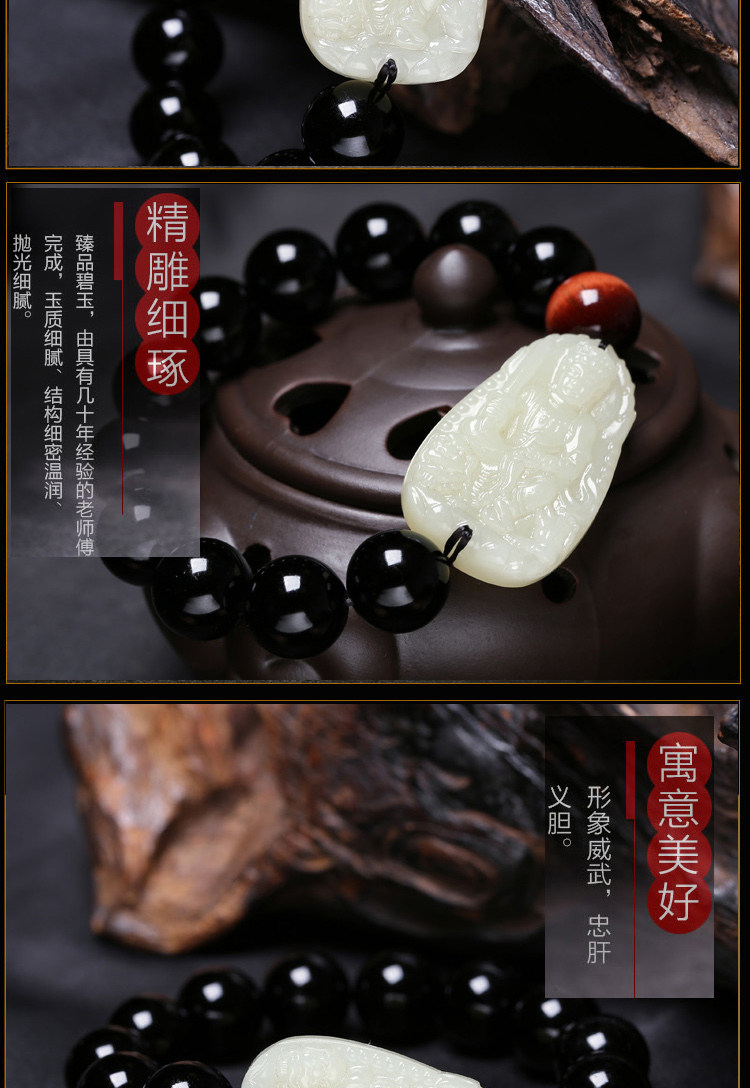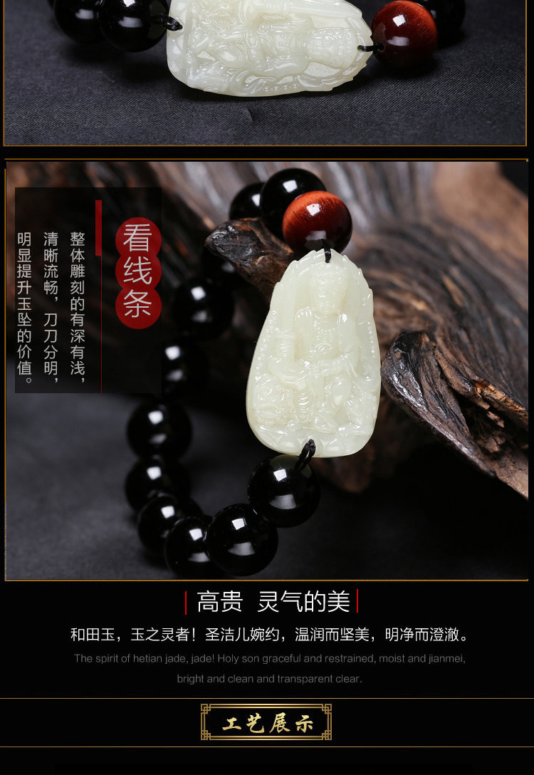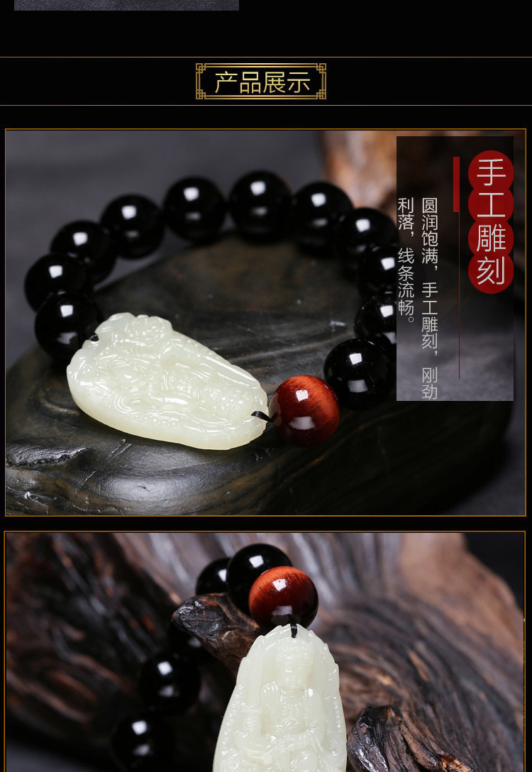 开光和田玉本命佛手链肖兔曼唯传奇手链黑曜石文殊菩萨玉石男士款