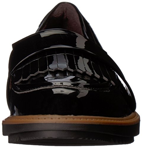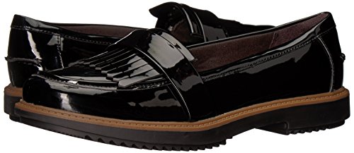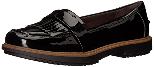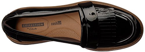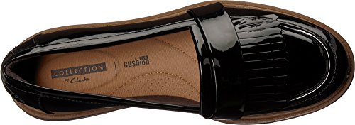 Studio : Clarks Publisher : Clarks Binding : Apparel Product Description The Raise Theresa by Clarks Collection is fresh take on the traditional loafer. A sleek, synthetic patent upper features a wrap-around fringe detail for a fashion forward look. Perfect for work or a day on the town in jeans. The Ortholite footbed with Cushion Soft technology provides all day comfort and softens every step. 0