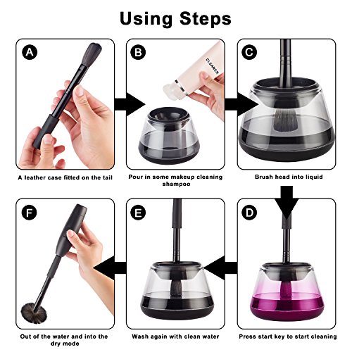 8 different sizes to fit different brushes, suitable for 95% makeup brushes in the market. which means you can clean many brush sets with this automatic brush cleaner.