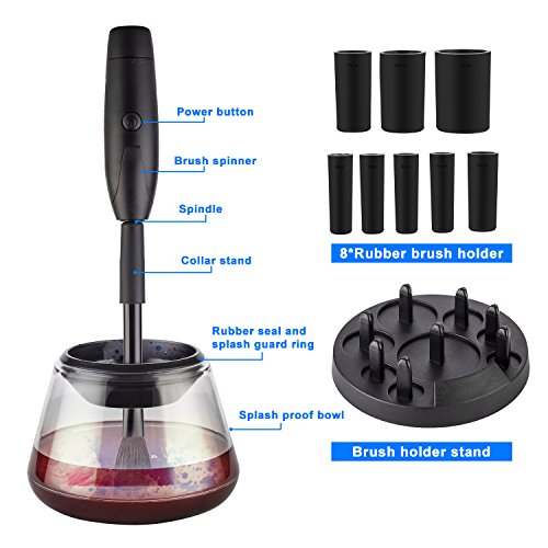 Massun Makeup Brush Cleaner and Dryer, Speed Adjustable Electric Brush Cleaning Tool Machine, Completely Clean and Dry in 360 Rotation with 8 Silicone...