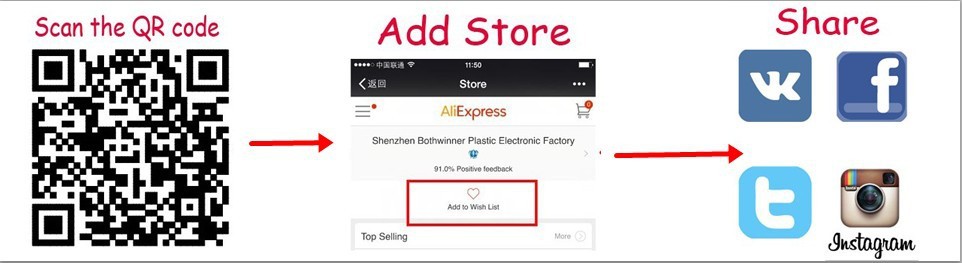 Like this,you can share the item on your FACEBOOK,VK... and put them in your shopping cart