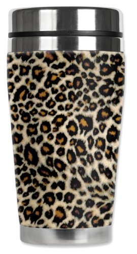 Mugzie Small Leopard Spots Travel Mug with Insulated Wetsuit Cover, 16 oz, Black