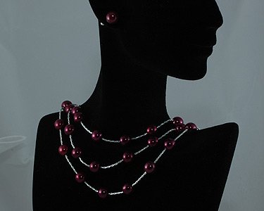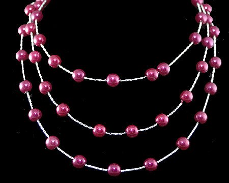3 rows of cascading Bright Plum/Eggplant color pearls