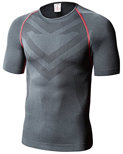 -. Title : RIVOOLS 半袖 吸汗速乾 スリム レギンス Tシャツ 男性用機能性肌着 姿勢矯正 猫背解消 上着 メンズ 無地 高弾力 訓練服 (XL, ブラック+レッド)