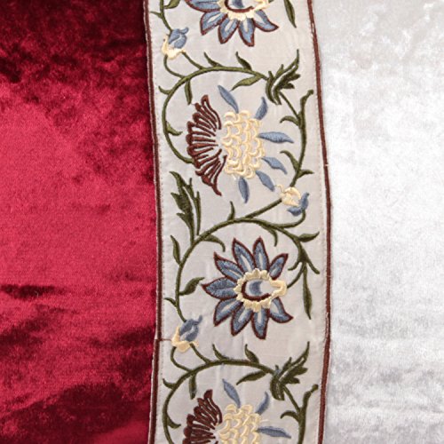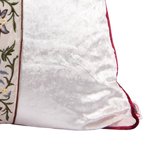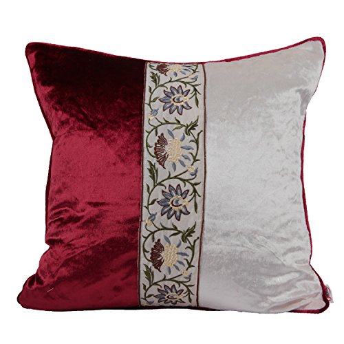 Queenie® - 1 Pc Chenille with Embroidery Decorative Pillowcase Cushion Cover Throw Pillow Case 18 X 18 Inch 45 X 45 Cm (Burgundy & Ivory with Embroidered Border)