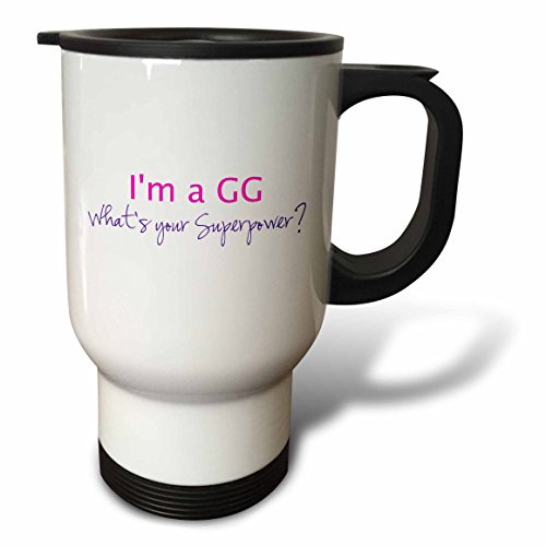 I'm a GG - What's your superpower - hot pink - funny gift for grandma travel mug is a great way to take your favorite hot or cold drink along. With a tapered bottom this stylish 14oz mug fits in a standard cup holder and features an easy-grip handle with thumb rest, slide opening lid and slanted drinking surface. This travel mug is made of stainless steel. Not microwave safe, hand washing is recommended.Feature