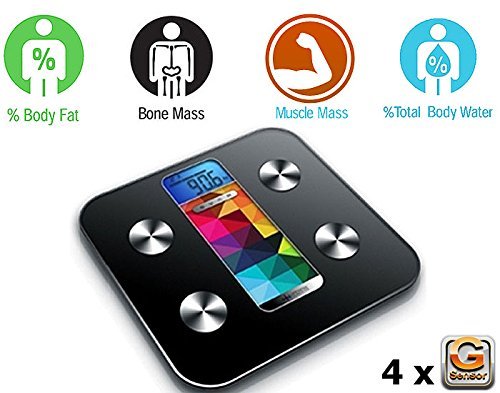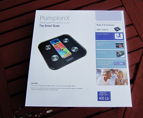 -. Title : AmericanPumpkins Slim Digital Bathroom Scale - Measures Weight, Body Fat, Water & Bone Mass Tempered Glass Equipped with 4 High Precision G Sensors, 400 lb/181 kg, Black