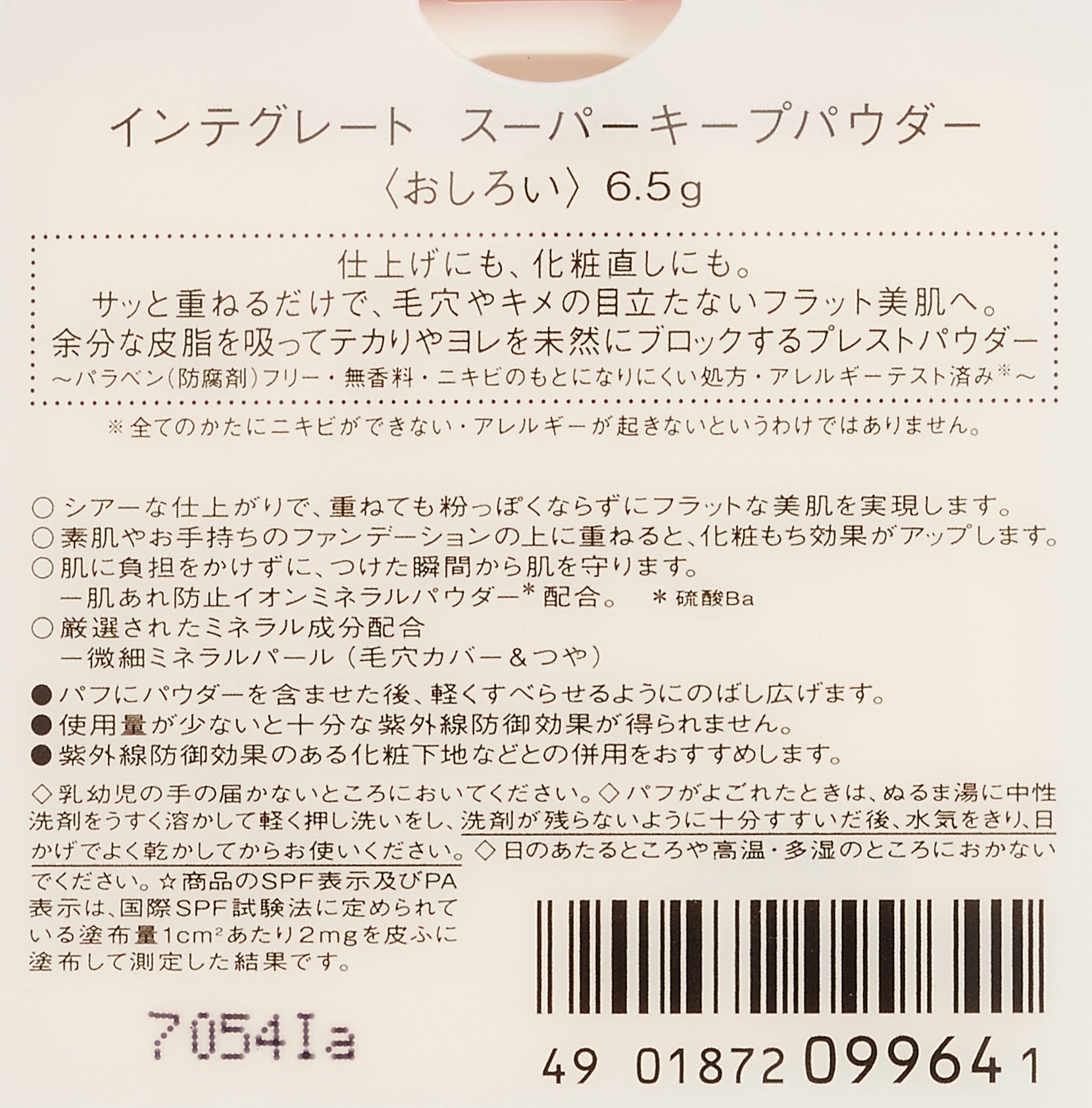 ※ The SPF display and PA display of the product is the result of measuring 2 mg / cc / m 2 of coated amount as specified in the International SPF Test Method.