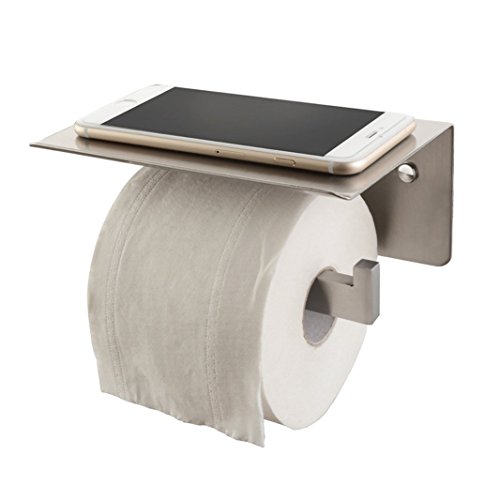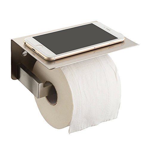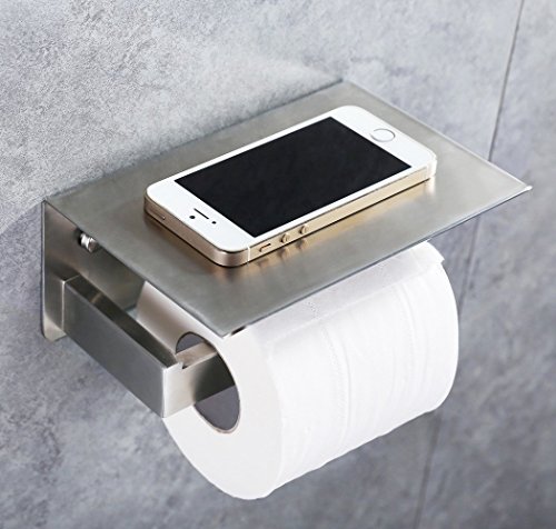 Toilet Paper Holder SUS304 Stainless Steel Bathroom Tissue Holder with Phone Storage Shelf Brushed Nickel